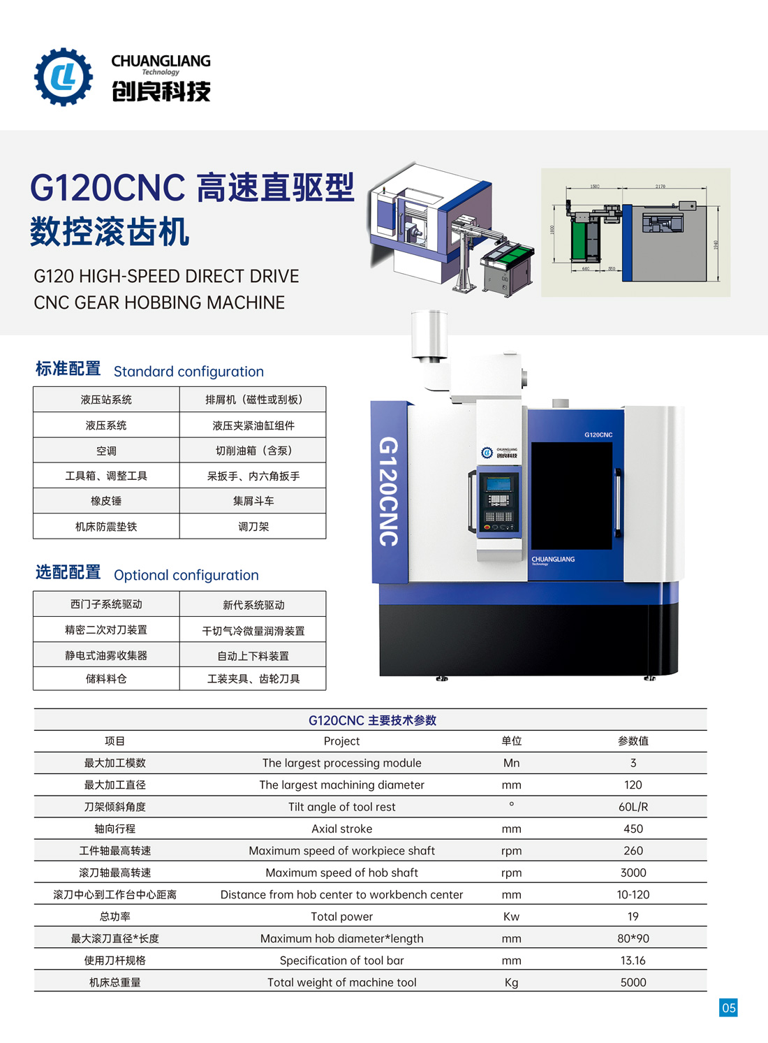 G系列为高速直驱型数控滚齿机。主要有G120、G150、G200、G320为主的各种型号,本系列高速数控滚齿机设计为直驱机型,采用德国西门子大功率直驱电机直接驱动滚刀主轴和工作台。